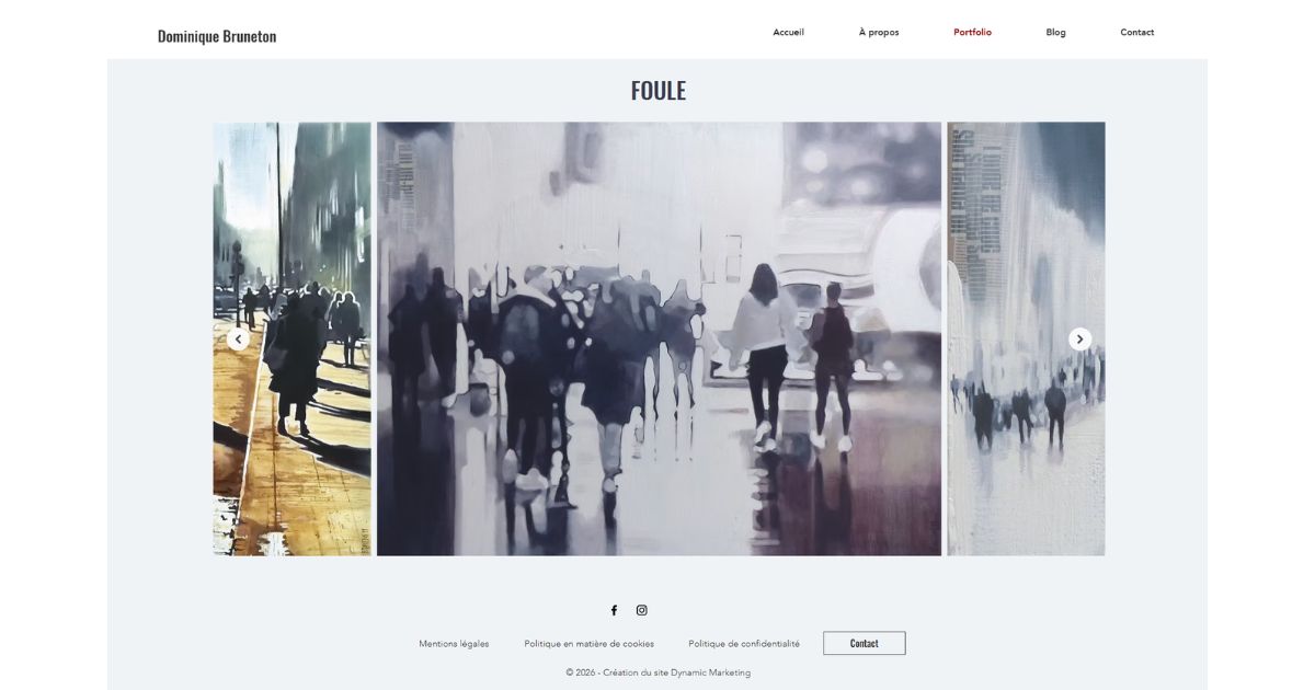 En mars 2026, Dynamic Marketing a accompagné l’artiste peintre Dominique Bruneton dans la création de son nouvel écrin numérique. L’enjeu était de concevoir un site vitrine “Portfolio” capable de traduire l’émotion de ses œuvres tout en offrant une expérience utilisateur fluide et immersive. Le défi consistait à créer une interface épurée, agissant comme les murs blancs d’une galerie d’art, pour laisser les couleurs et les textures des toiles s’exprimer pleinement.